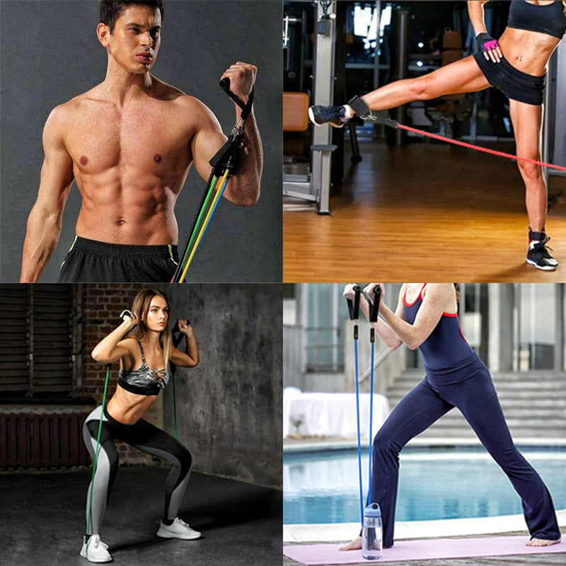 Pogodne za sve – bez obzira na težinu ili visinu korisnika, ove trake će vam pružiti optimalan otpor i prilagoditi se vašim potrebama. Set uključuje **5 guma različite jačine**, par ručki, 2 gurtne za noge i transportnu vrećicu, omogućavajući vam da vežbate bilo gde i bilo kada.